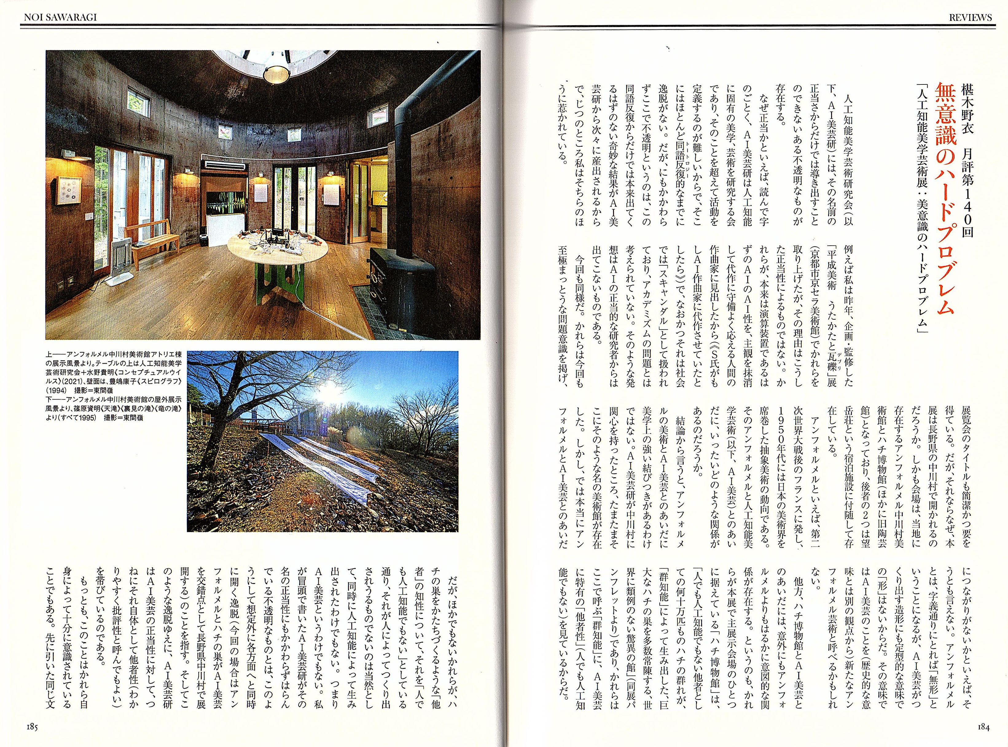 椹木野衣「無意識のハードプロブレム」『美術手帖』2022年4月号、184-187頁。